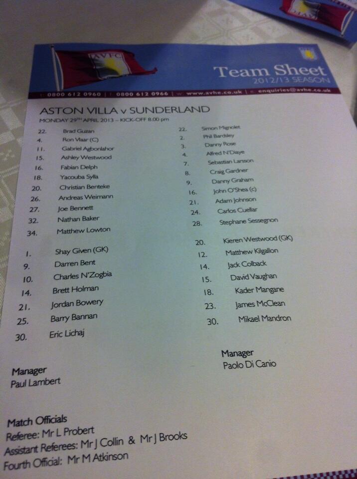 Aston Villa : Guzan, Lowton, Vlaar [c], Baker, Bennett, Westwood, Delph, Sylla, Weimann, Agbonlahor, Benteke.