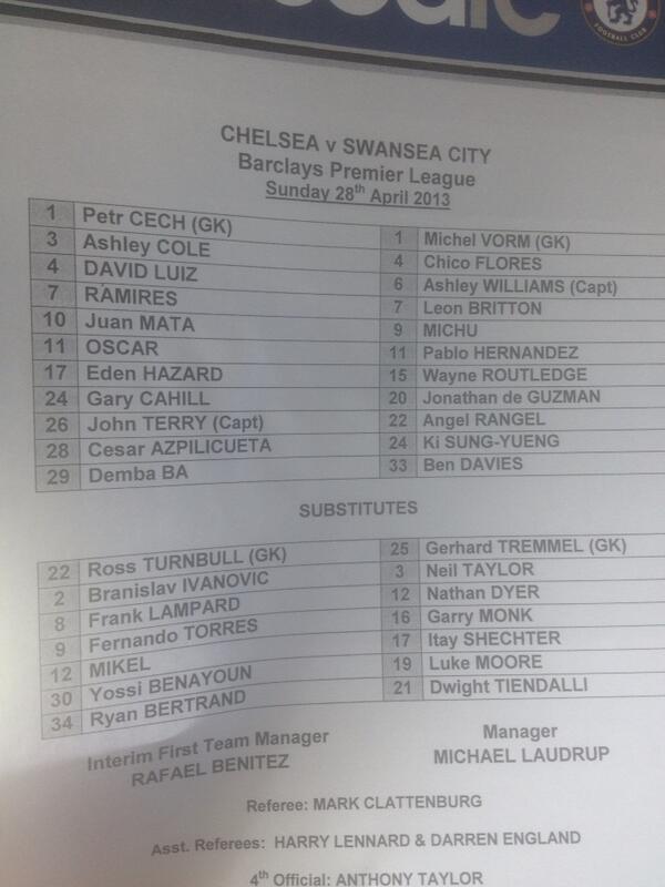 David Luiz esta desde el minuto inicial buscando con sus pases a los delanteros y si coje la responsabilidad del pase puede estar seguro el equipo de Londres de que hoy venceran. El equipo visitante sacaba el balón jugado con muy buenos recursos técnicos cuándo se podía aunque estaban en su campo la mayor parte del tiempo y así es muy difícil que su principal arma ofensiva Davies marque el gol estando tan solo. Quizás haya sido uno de los mejores en el equipo que entra Rafa Benitez en el primer tiempo pero las ocasiones falladas por sus compñaeros luego pueden pesar en el ánimo del equipo en los segundos 45 minutos.