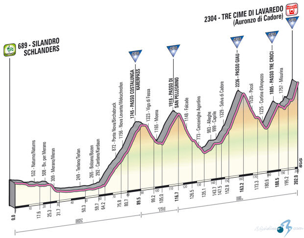 Penúltima etapa de la ronda italiana en la qué si llega un final apretado en la clasificación será de auténtico lujo verla. Los principales protagonistas tendrán que estar finos viendo el final cerca a más de uno se le puede atragantar los Km de este dia y borrar de un plumazo el buen trabajo realizado durante todo la ronda italiana. Es un día capaz de todo y de aburrirte enteramente si esta todo decidido.