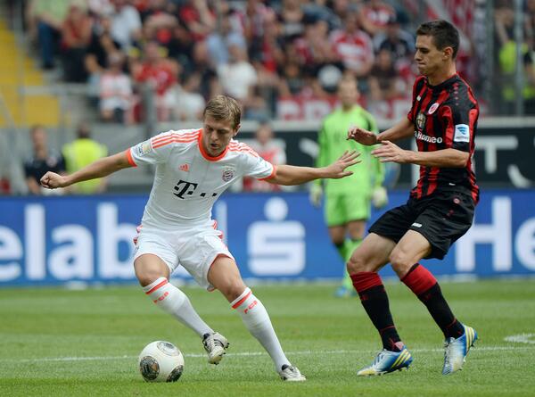 La segunda parte comenzó sin cambios en ambos equipos y con una primera ocasión de Mandzukic de cabeza a pase de Kroos que se machó fuera. El partido entró en una fase falta de ritmo y de ocasiones, por lo que el Frankfurt se fue animando y tuvo un par de llegadas. Una falta directa de Schwegler y un remate de Inui, aunque lejos de inquietar en exceso a Neuer. Thiago a pase de Robben tuvo un buen chut que atrapó Trapp a los 74'. Celozzi a los 78' lo intentó con un disparo para el Frankfurt, pero el balón rebotó en la defensa del Bayern. El Bayern intentaba dormir el encuentro pero este 0-1 se antojaba corto y el Frankfurt veía que podía llevarse algo más en el encuentro. A los 85' probó fortuna Robben de falta, aunque acabó atajando Trapp sin muchos apuros. No dio tiempo para más. Nueva victoria del Bayern, por la mínima, y aun le falta para ser ese rodillo que nos tenía acostumbrados la pasada campaña. Mucho le falta a este Bayern para llegar a ese nivel, aunque de momento sigue invicto en Bundesliga.