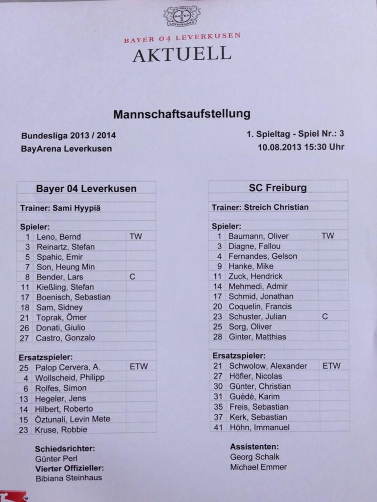 El equipo local tendrá que sobreponerse defensivamente a la baja del mejor jugador nombrado el pasado año de la Bundesliga y que ha recalado en el Real Madrid. Una liga apasionante que le dan la tercera plaza la casa de apuestas pero que sino lo dan todo en el campo puede suceder como otros años y verse más abajo de lo normal. El partido comenzó con una buena presión el a parte atacante del equipo visitante, los nervios en los locales se notaron desde un inicio aunque poco a poco iban mejorando en su juego aún teniendo el porcentaje de tiempo mayor en sus pies el equipo visitante. Kiessling estaba empezando a aparecer cómo en es habitual y antes del minuto 10 ya tuvo su primera ocasión disparada entre palos al equipo contrario. Poco a poco iba borrando el Leverkuzen a su rival en el terreno de juego con sus ataques peligrosos. Y así llegó el minuto 23 de juego tras una buena cabalgada de Reinartz por el flanco derecho que de tremendo cabezazo aprovechó Kiessling para empujar a las redes y anotar su primer gol en esta Bundesliga. Según declaraciones en dias anteriores quiere luchar por el pichichi de esta liga, y aunque suene arrogante por una parte este jugador en es un auténtico "killer" a la vieja usanza. El Leverkusen bajaba el ritmo del partido y fruto de un pase mal realizado en labores defensivas llegó una contra del equipo visitante que aprovecho Hanke como "chiquillo pillo" y materializó a las redes en el minuto 40 de juego. Se volvía a un empate entre ambos equipos aunque de manera inmerecida que se movera o no dependiendo de lo que hagan en los siguientes 45 minutos.