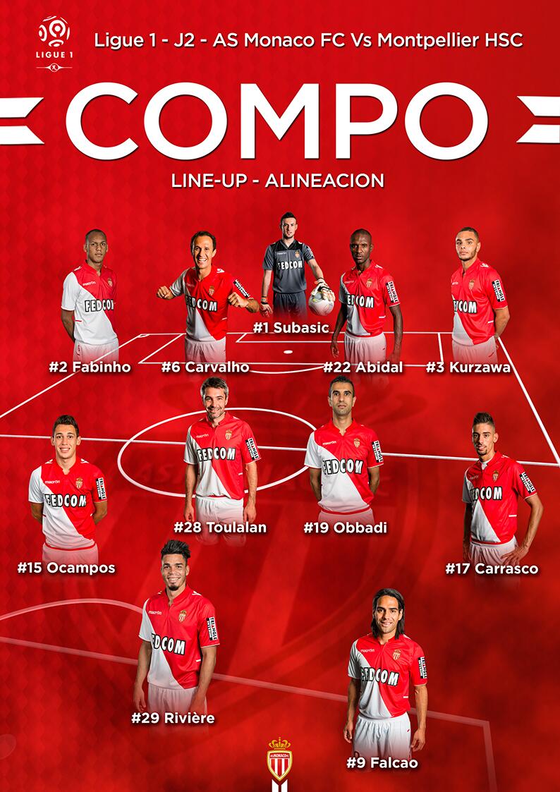 Mónaco : Subasic, Fabinho, Kurzawa, Carvalho, Abidal (cap), Toulalan, Obbadi, Ocampos, Carrasco, Rivière, Falcao