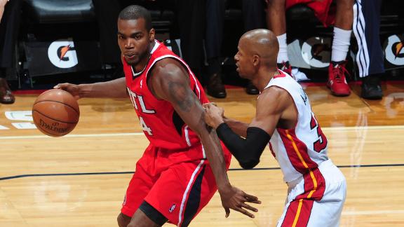 Los Hawks llevó desde el salto inicial y respondió cuarto trimestre de rally por delante de LeBron James y el Heat .