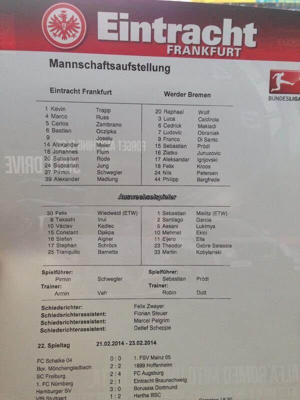 Al comienzo de la segunda ronda trajo Armin Veh Aigner para Madlung . Russ fue al centro de la zaga , Flum para el de seis posiciones . Además, el Frankfurt fue el equipo dominante de juego , podrían , sin embargo , gana en contra de la Bremer bajas "sólo" una serie de curvas.