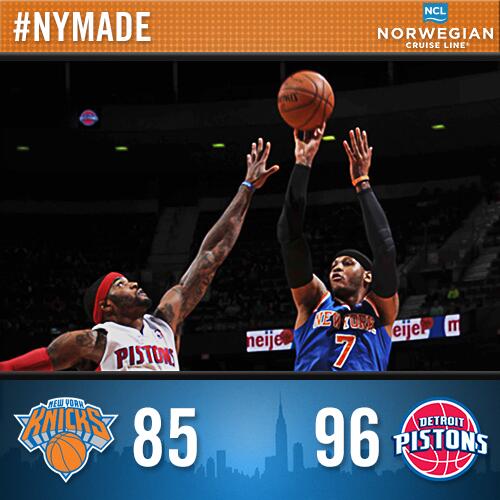 Detroit reservas Rodney Stuckey y Will Bynum anotaron cada uno 16 puntos , ayudando a la banca de su equipo de anotar más puntos que Nueva York de 36-7 .Greg Monroe tuvo 11 puntos y nueve rebotes para los Pistons, que están tratando de subir en la clasificación de la Conferencia Este para ganarse un lugar en los playoffs por primera vez desde 2009 .