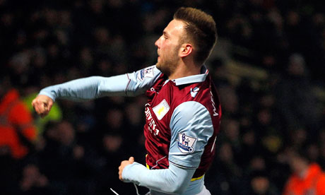 Norwich estaban traumatizados por la guerra y Villa aprovechó como Gabriel Agbonlahor , Andreas Weimann y Bacuna contraatacó con ritmo , con este último se encrespa su huelga en el segundo palo.