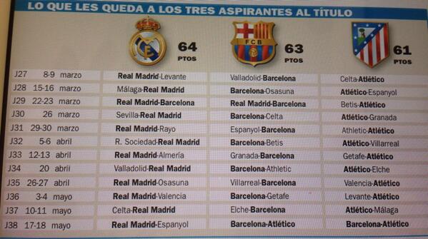 | Lo que resta del Calendario de Liga 2013/2014 ¿Quién ganara?. |