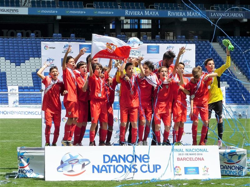El conjunto sevillista se hizo con la Final Nacional de la Danone Nations Cup 2016 demostrando de nuevo su categoría en el fútbol alevín. El FC Barcelona y el Málaga CF se han alzado con el tercer y cuarto lugar, respectivamente.