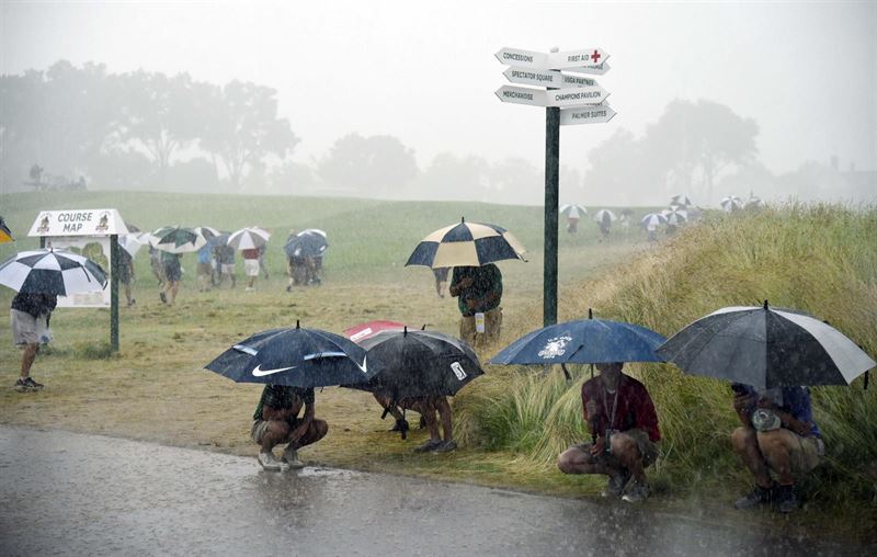 De hecho, la previsión de tormenta, también eléctrica, aparece en el parte del viernes tarde. En cuanto a los nombres propios de este US Open, el número uno del mundo, el australiano Jason Day, no pudo hacer su debut programado para la tarde.