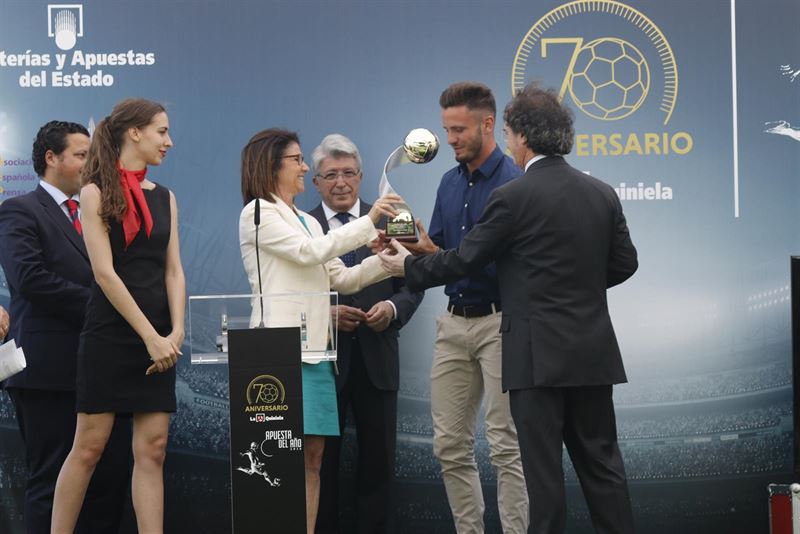 Por su parte, Inmaculada García, presidenta de Loterías y Apuestas del Estado, afirmó que todos, pero sobre todo los jóvenes, deben seguir el "esfuerzo y afán de superación" que Saúl Ñíguez representa. "Estamos encantados de que hayas sido elegido, tus méritos están de sobra demostrados, aunque no estés en la Eurocopa", continuó.